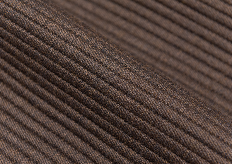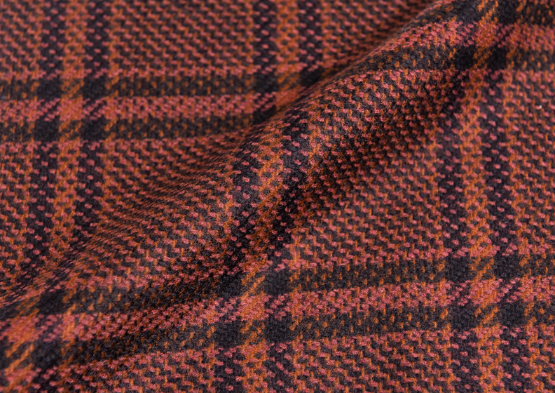 I materiali sono soffici e di grande impatto: le lane avvolgono il corpo in uno scambio tattile e sensoriale, le disegnature riprendono i classici dello spigato, del pied-de-poule, del Principe di Galles in versione dilatata o in 3D.