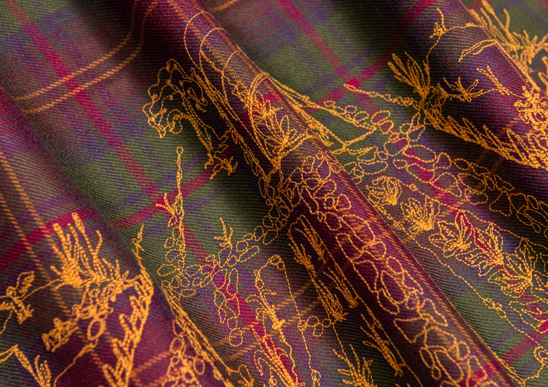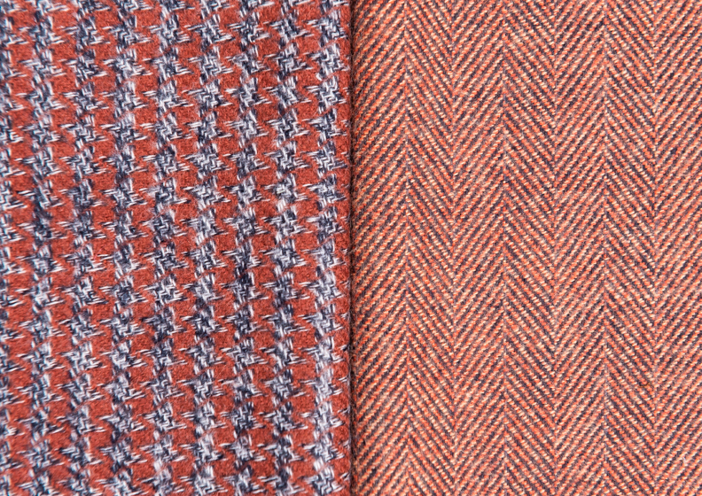 I nastri sono in lana garzati, spigati e piccoli tartan o nastri accoppiati.