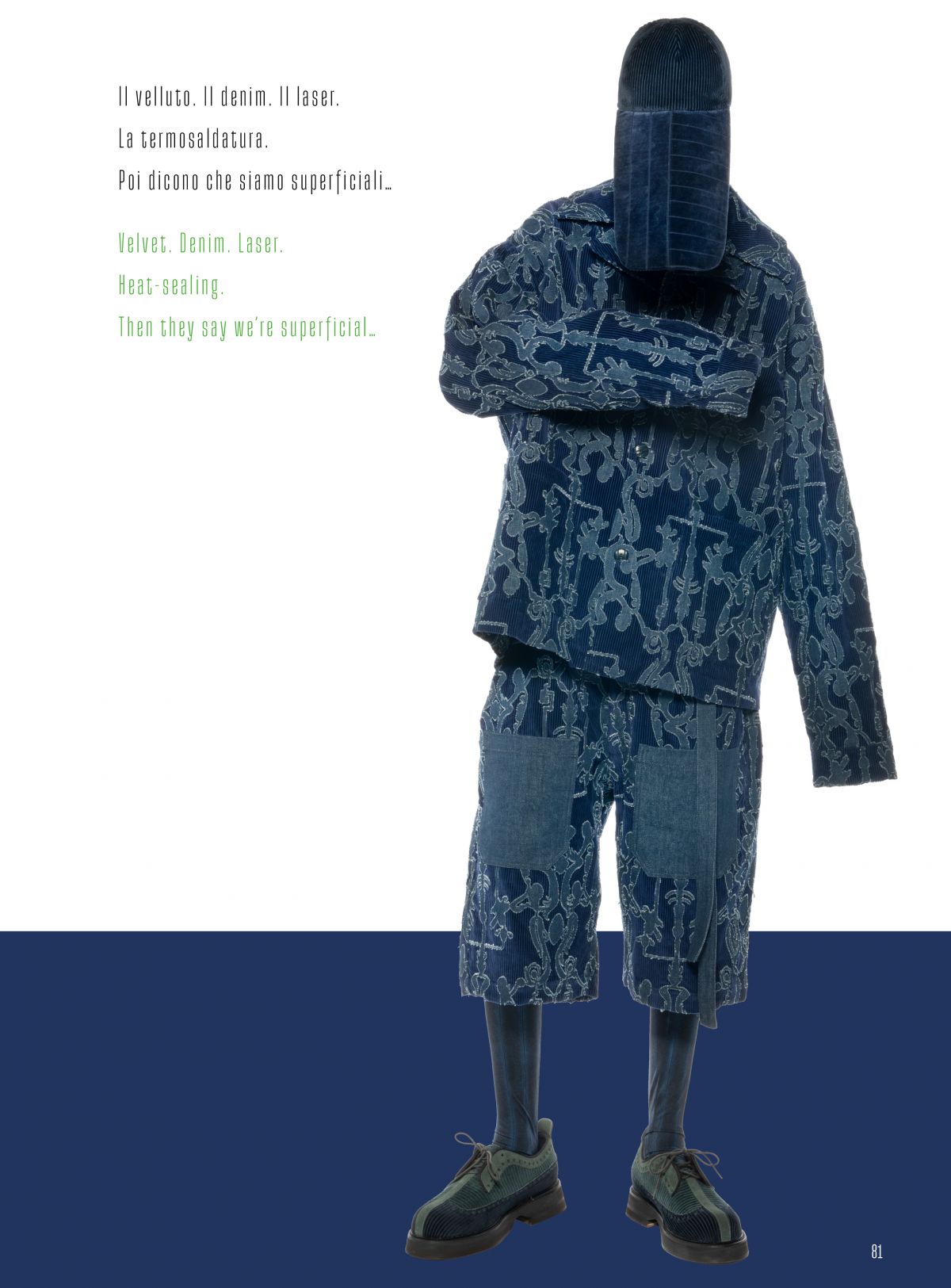 Il velluto, protagonista versatile di quest’esposizione, viene reinterpretato attraverso materiali come seta, cotone e nylon. Le tecniche di stampa fotografica e l'uso creativo della luce esaltano la tridimensionalità del tessuto, mentre audaci abbinamenti cromatici e tagli sperimentali rivelano il potenziale artistico del velluto futuristico.